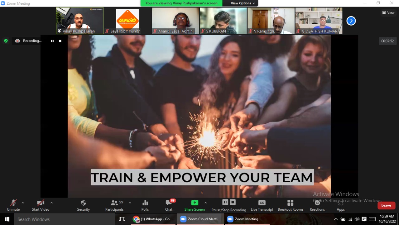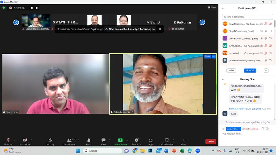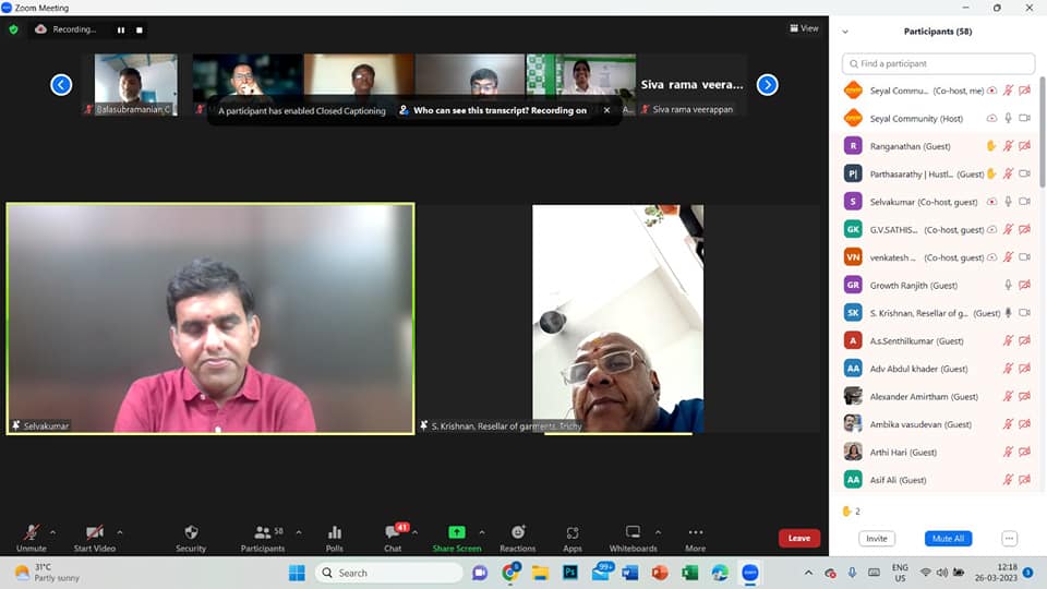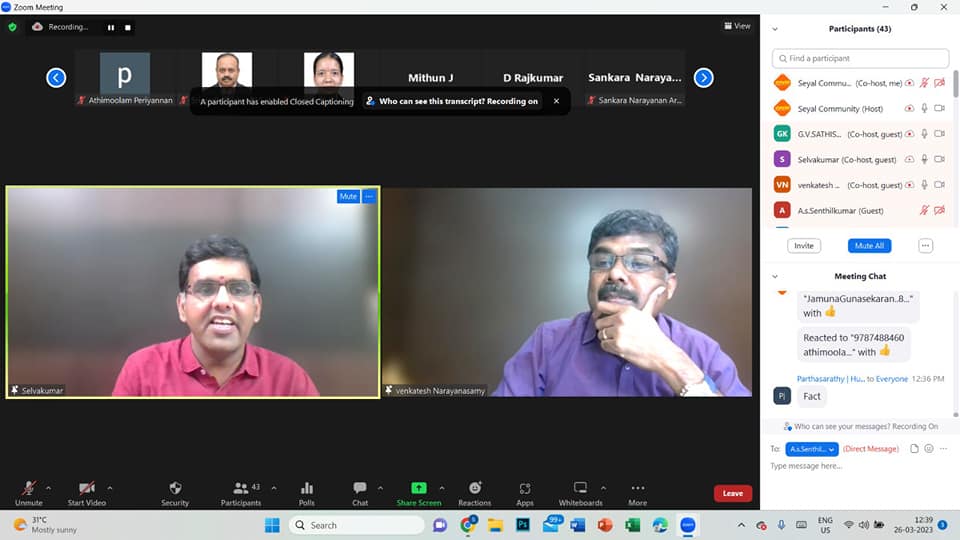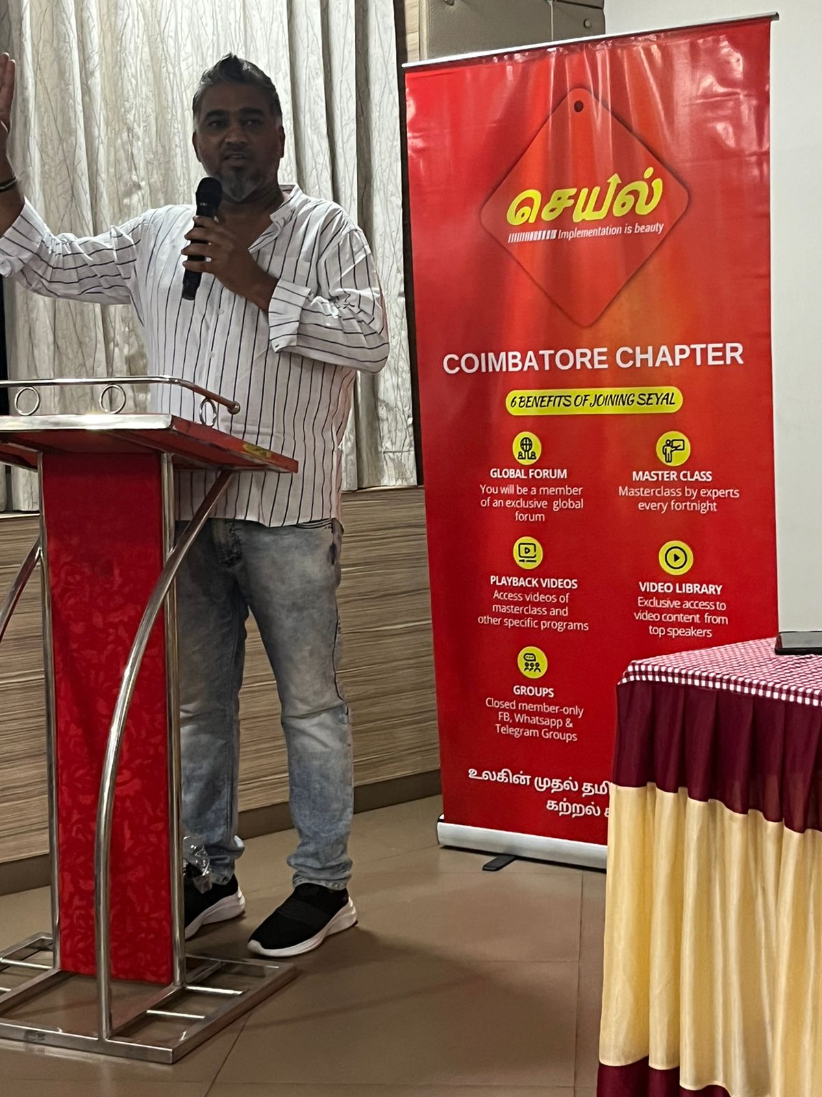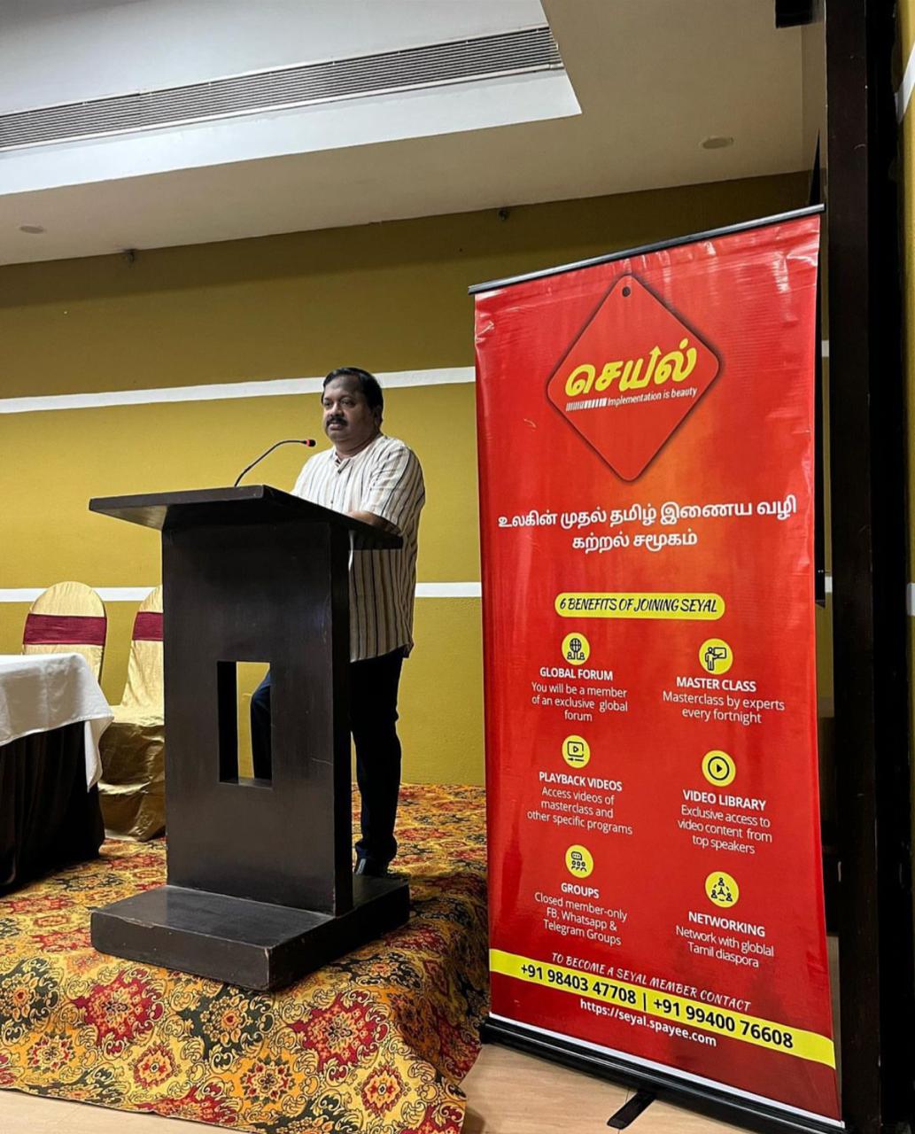 Seyal Forum, launched in 2020, is the world’s first Tamil online/offline learning and business community, dedicated to lifelong learning, mentorship, and practical implementation. Through masterclasses in practical Tamil, members gain actionable insights in entrepreneurship, wellness, leadership, and more.