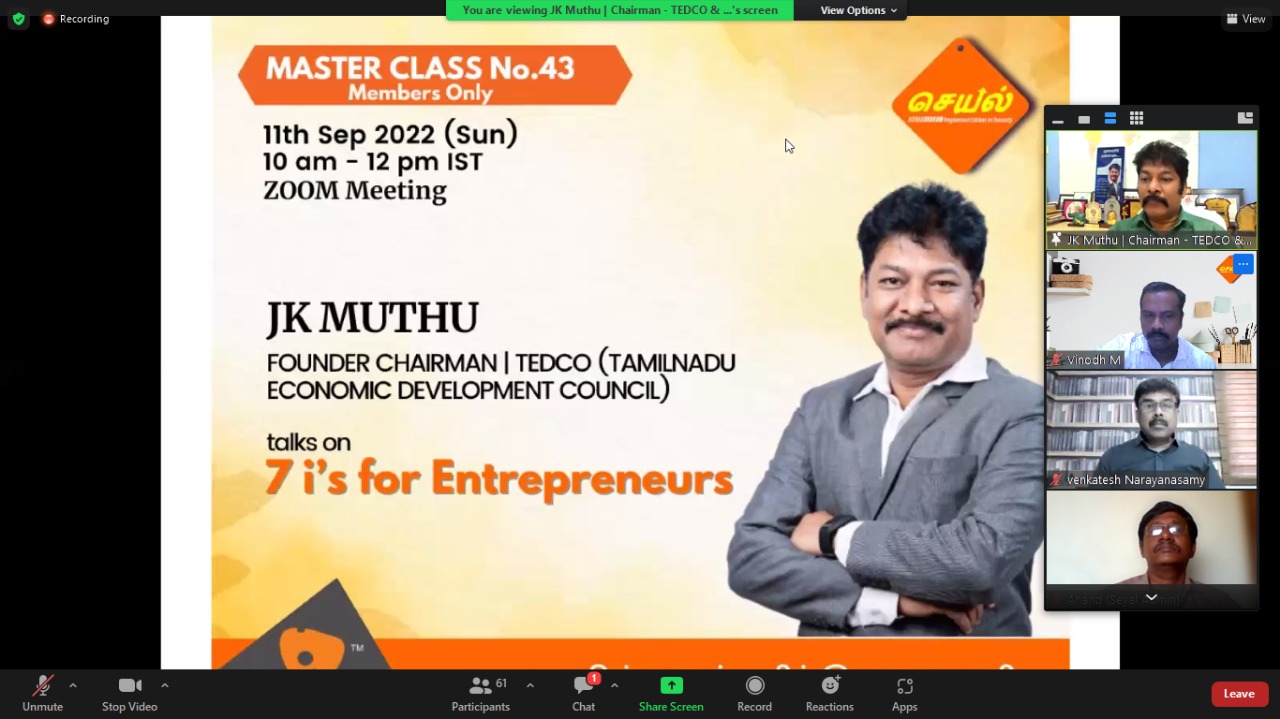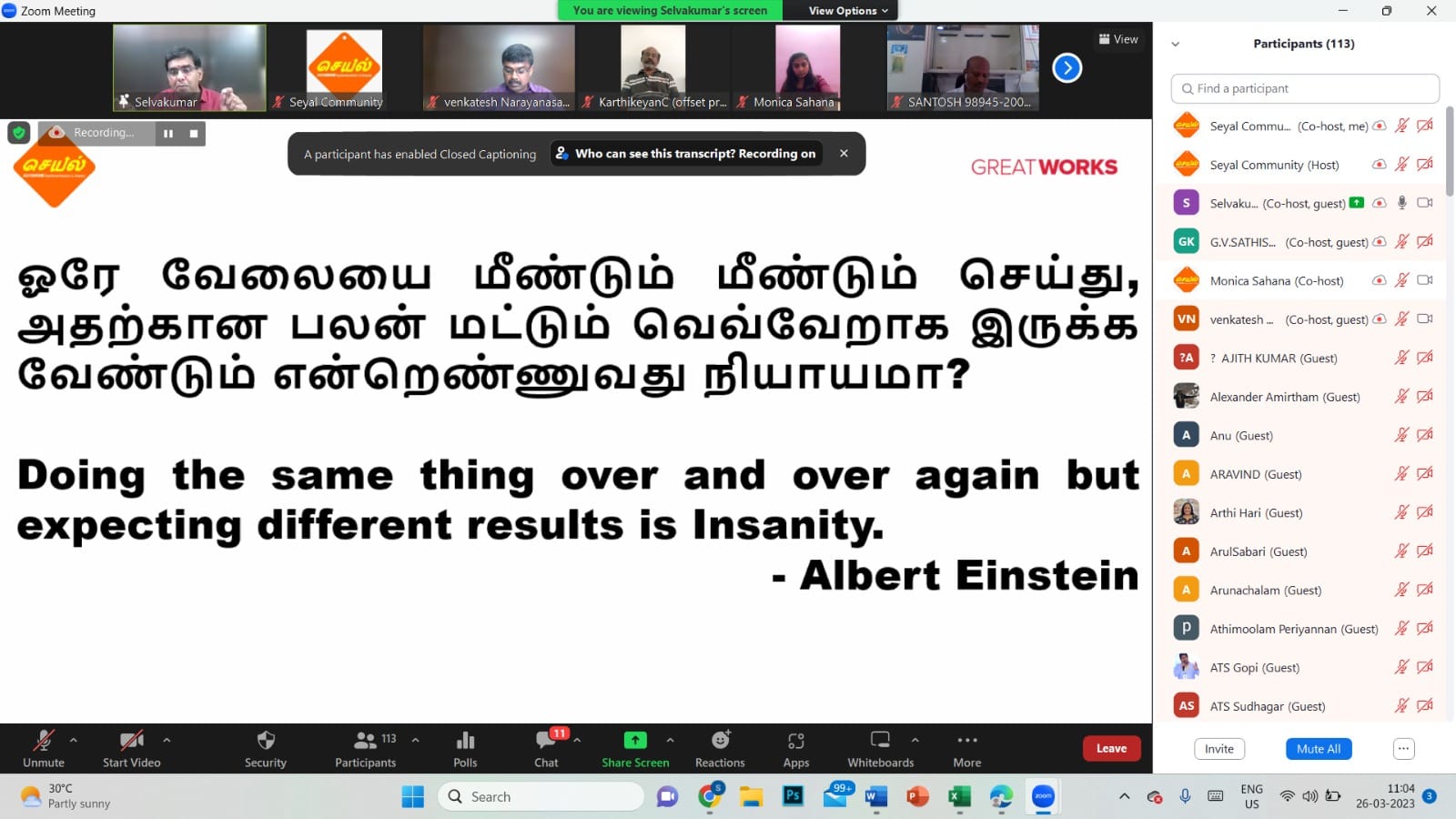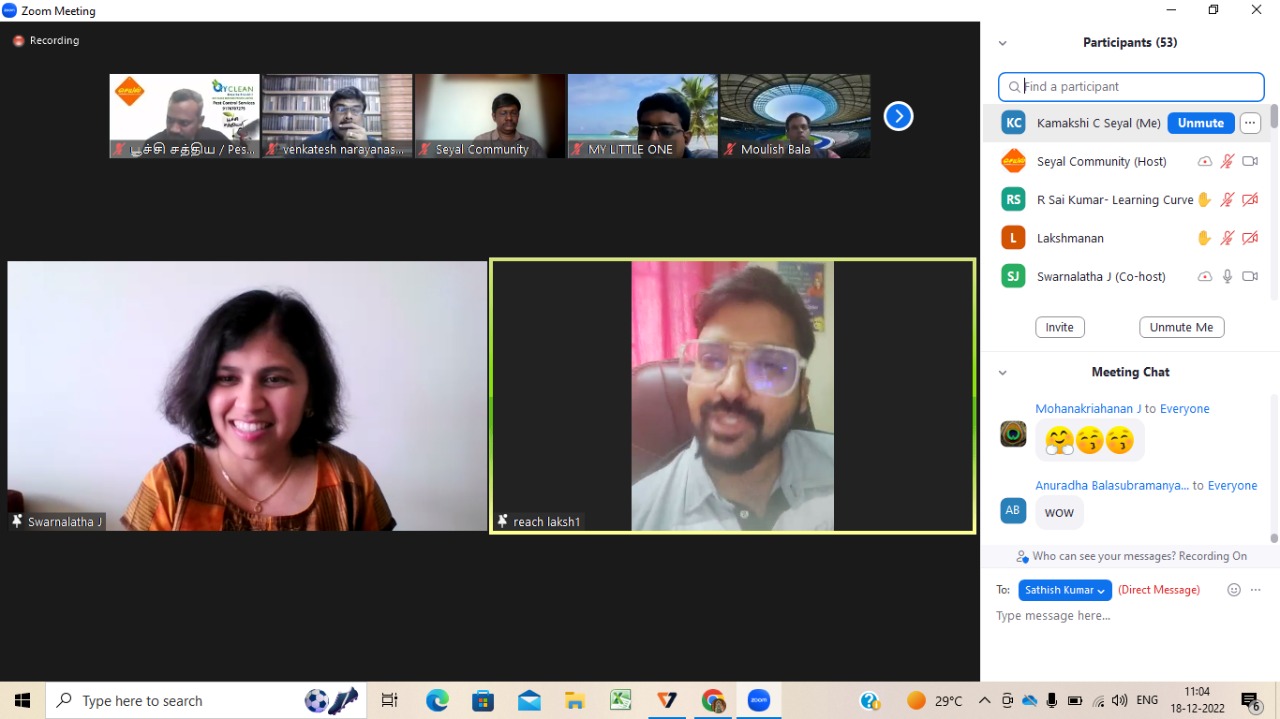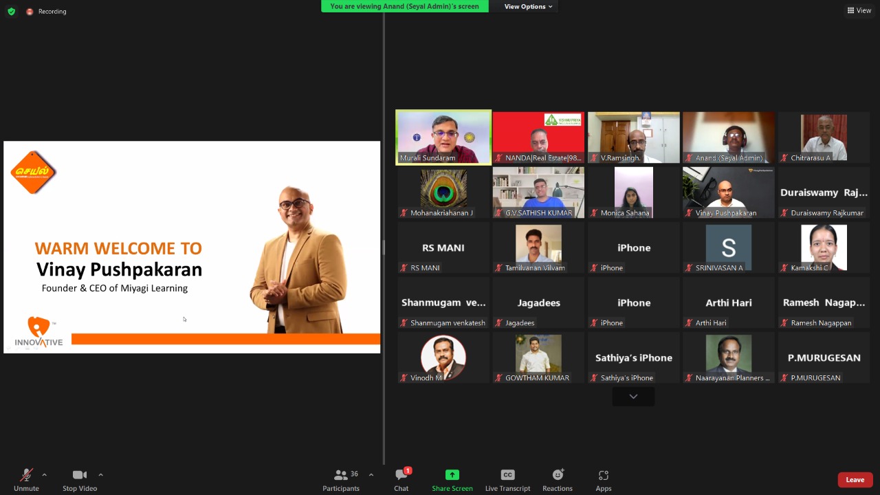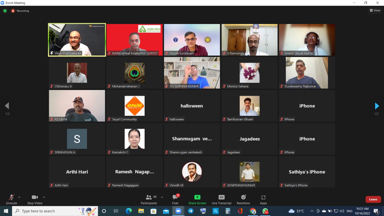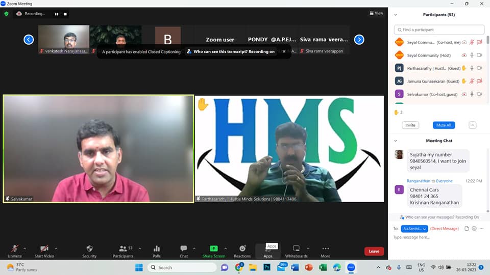 Seyal Forum, launched in 2020, is the world’s first Tamil online/offline learning and business community, dedicated to lifelong learning, mentorship, and practical implementation. Through masterclasses in practical Tamil, members gain actionable insights in entrepreneurship, wellness, leadership, and more.
